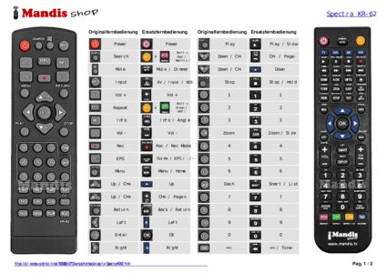 Ein Dokument ist enthalten, um die Verwendung der neuen Fernbedienung zu erleichtern, indem es die Tastenbelegung zeigt.