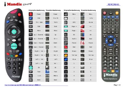 Ein Dokument ist enthalten, um die Verwendung der neuen Fernbedienung zu erleichtern, indem es die Tastenbelegung zeigt.