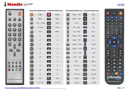 Ein Dokument ist enthalten, um die Verwendung der neuen Fernbedienung zu erleichtern, indem es die Tastenbelegung zeigt.