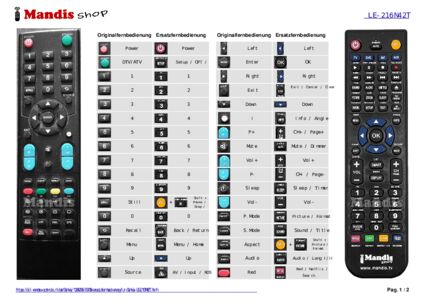 Ein Dokument ist enthalten, um die Verwendung der neuen Fernbedienung zu erleichtern, indem es die Tastenbelegung zeigt.