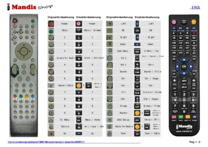 Diese Fernbedienung ersetzt Ihre Eros (S2201DVT) in vollem Umfang und bietet alle Funktionen des Originals.