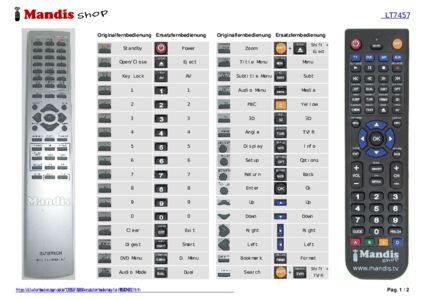 Ein Dokument ist enthalten, um die Verwendung der neuen Fernbedienung zu erleichtern, indem es die Tastenbelegung zeigt.