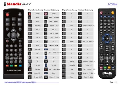 Diese Fernbedienung ersetzt Ihre TCT2100 in vollem Umfang und bietet alle Funktionen des Originals.