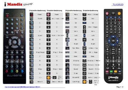 Ein Dokument ist enthalten, um die Verwendung der neuen Fernbedienung zu erleichtern, indem es die Tastenbelegung zeigt.