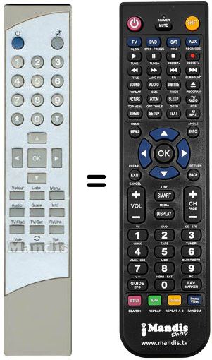 Fernbedienung, die das Original und die Gesamtheit seiner Funktionen, vollständig ersetzt.