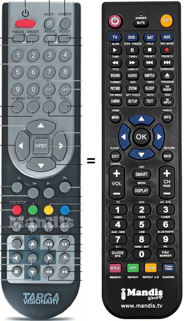 Die Fernbedienung ersetzt das Original VISIONARYLT1910DVD in der Gesamtheit seiner Funktionen.