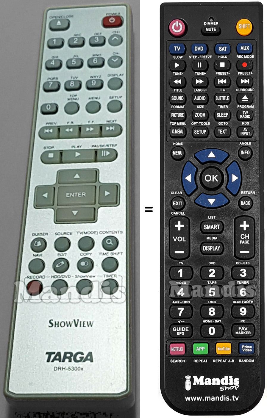 Diese Fernbedienung ersetzt Ihre DRH-5300X in vollem Umfang und bietet alle Funktionen des Originals.