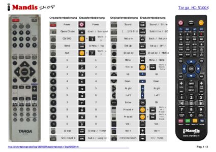 Home > Marken > Fernbedienungen Targa > Fernbedienung für TARGA HC-5100X