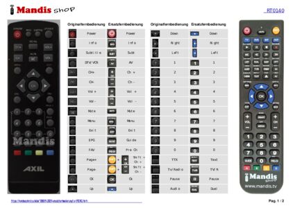 Diese Fernbedienung ersetzt Ihre RT0140 in vollem Umfang und bietet alle Funktionen des Originals.