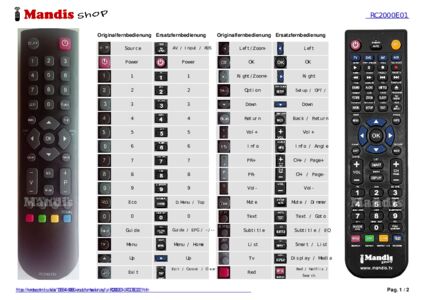 Diese Fernbedienung ersetzt Ihre RC2000E01 (04TCLTEL0222) in vollem Umfang und bietet alle Funktionen des Originals.