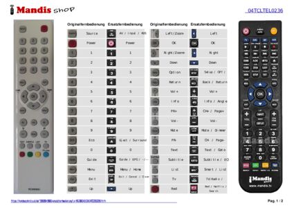 Diese Fernbedienung ersetzt Ihre RC 3000 E 03 (04TCLTEL0236) in vollem Umfang und bietet alle Funktionen des Originals.
