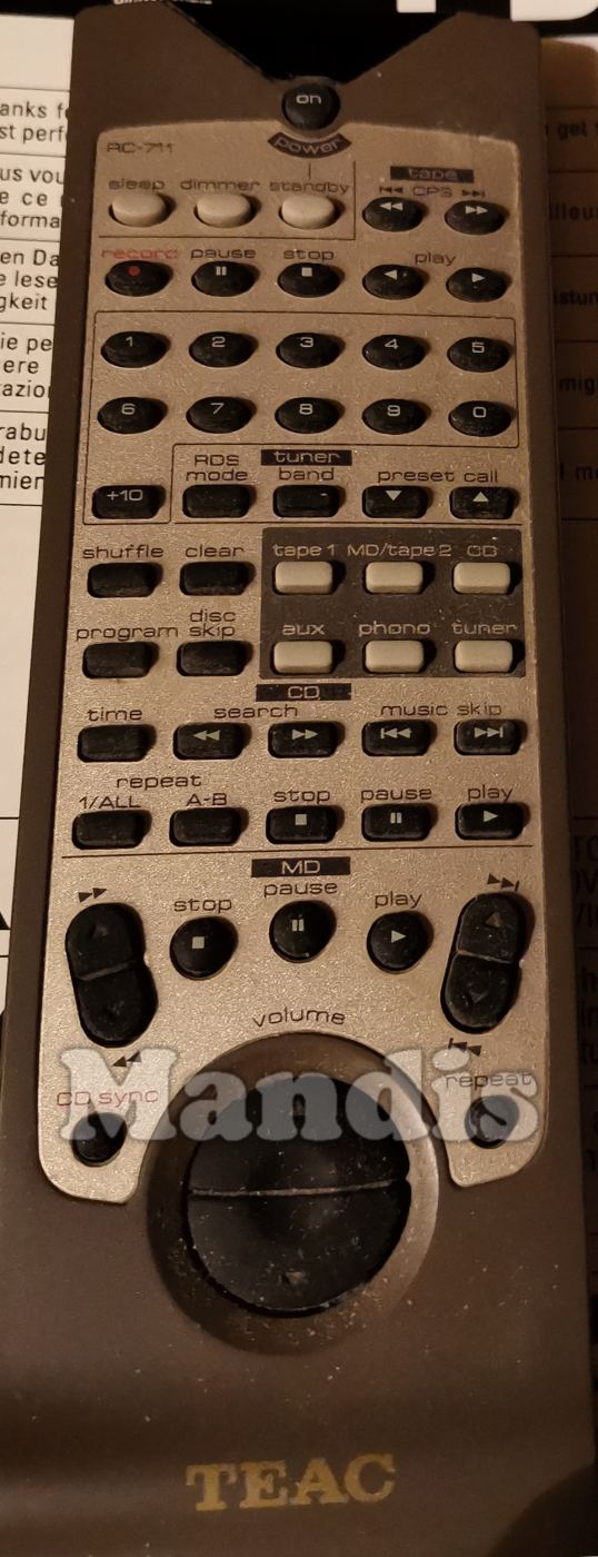 Fernbedienung Original RC-711 der Marke Teac. Es handelt sich um eine Originalfernbedienung.