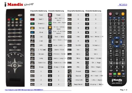 Diese Fernbedienung ersetzt Ihre RC1810 (20499102) in vollem Umfang und bietet alle Funktionen des Originals.