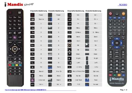 Ein Dokument ist enthalten, um die Verwendung der neuen Fernbedienung zu erleichtern, indem es die Tastenbelegung zeigt.