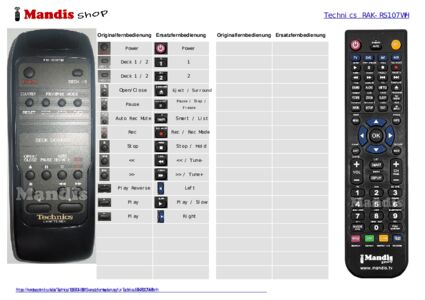 Diese Fernbedienung ersetzt Ihre RAK-RS107WH in vollem Umfang und bietet alle Funktionen des Originals.