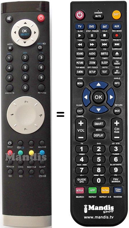 Es handelt sich jedoch nicht um eine Universalfernbedienung sondern um eine Fernbedienung die das Original ersetzt.