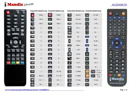 Ein Dokument ist enthalten, um die Verwendung der neuen Fernbedienung zu erleichtern, indem es die Tastenbelegung zeigt.