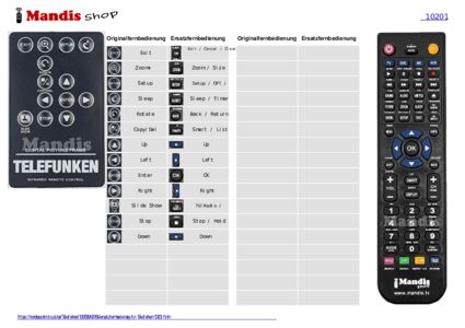 Diese Fernbedienung ersetzt Ihre 10201 in vollem Umfang und bietet alle Funktionen des Originals.