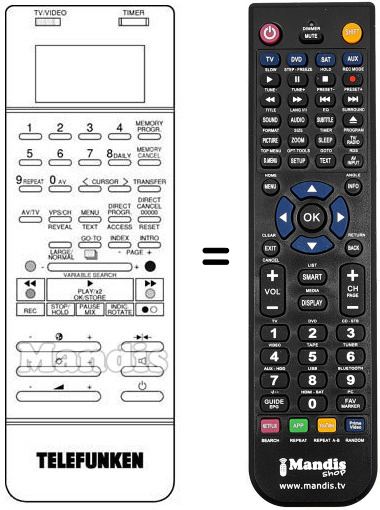 Fernbedienung, die das Original und die Gesamtheit seiner Funktionen, vollständig ersetzt. Es handelt sich jedoch nicht um eine Universalfernbedienung sondern um eine Fernbedienung die das Original ersetzt. Sie erhalten eine nach Einlegen der Batterien sofort einsatzbereite Fernbedienung. Jegliches Programmieren entfällt. Wir geben umfassende Garantie dafür, dass diese Fernbedienung alle Funktionen der Originalfernbedienung erfüllt.