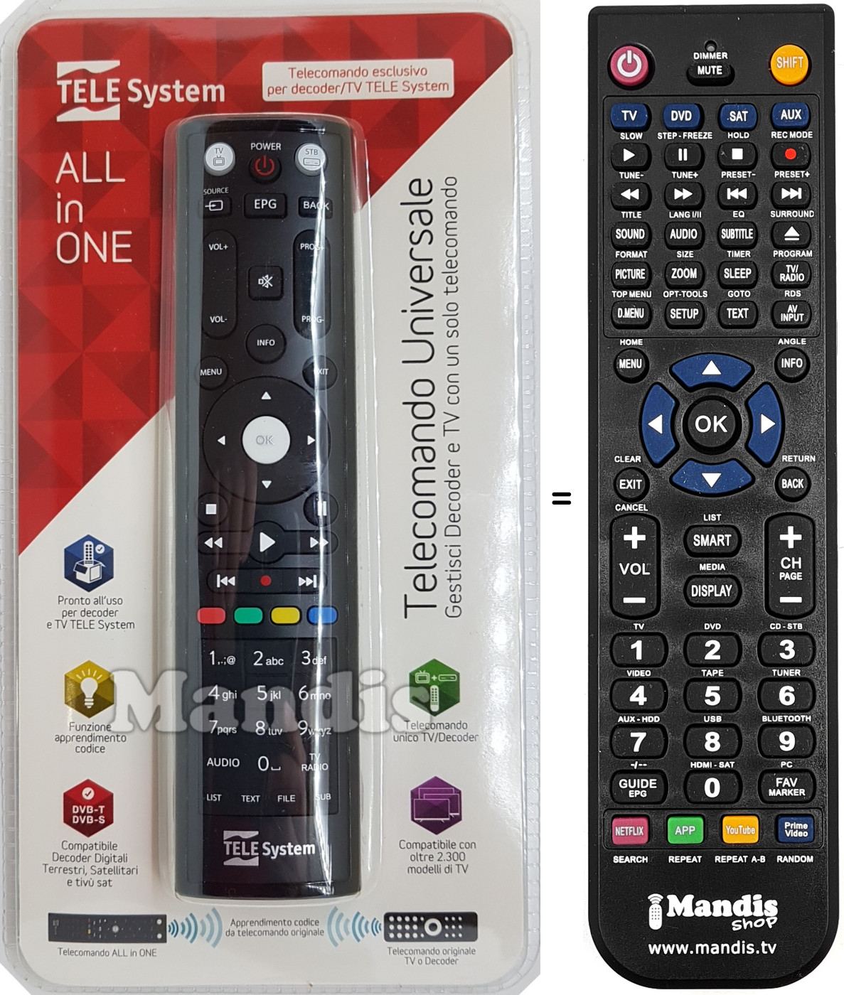 Fernbedienung, die das Original und die Gesamtheit seiner Funktionen, vollständig ersetzt.