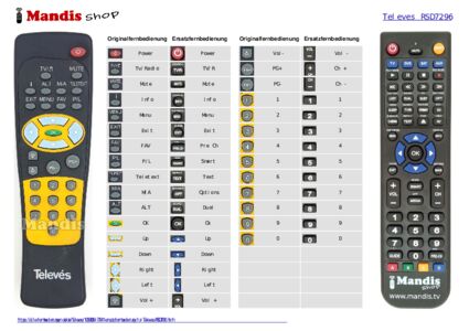 Diese Fernbedienung ersetzt Ihre RSD7296 in vollem Umfang und bietet alle Funktionen des Originals.