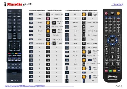 Diese Fernbedienung ersetzt Ihre CT-90345 (75018168) in vollem Umfang und bietet alle Funktionen des Originals.