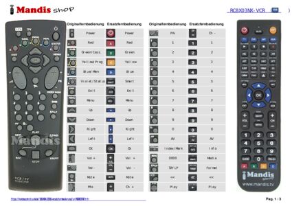 Im Folgenden zeigen wir Ihnen die Zuordnung jedes einzelnen Knopfes der Originalfernbedienung zu der Taste, die dieselbe Funktion auf der Ersatzfernbedienung ausführt. In einigen Fällen müssen Sie möglicherweise die UMSCHALT-Taste drücken, bevor Sie eine andere Taste drücken, um bestimmte Aktionen auszuführen. Diese zusätzlichen Funktionen werden oft wenig genutzt und dienen dazu, das Verständnis der Ersatzfernbedienung zu erleichtern oder weil die Originalfernbedienung mehr Tasten hat als das entsprechende Modell.