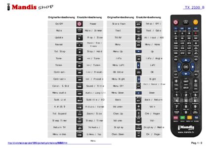 Ein Dokument ist enthalten, um die Verwendung der neuen Fernbedienung zu erleichtern, indem es die Tastenbelegung zeigt.