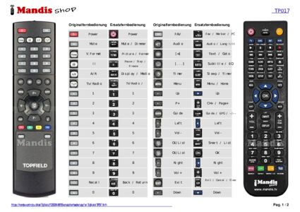 Diese Fernbedienung ersetzt Ihre Topfi001 in vollem Umfang und bietet alle Funktionen des Originals.