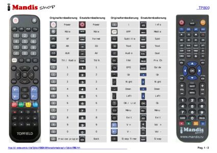 Diese Fernbedienung ersetzt Ihre TP800 in vollem Umfang und bietet alle Funktionen des Originals.