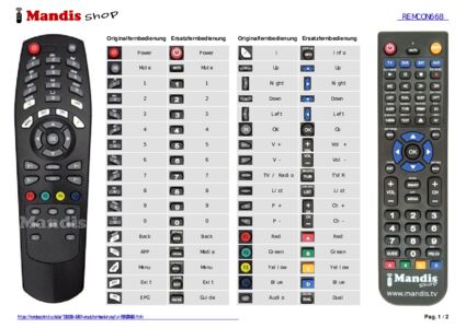 Ein Dokument ist enthalten, um die Verwendung der neuen Fernbedienung zu erleichtern, indem es die Tastenbelegung zeigt.