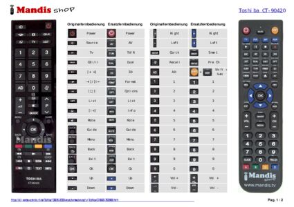 Ein Dokument ist enthalten, um die Verwendung der neuen Fernbedienung zu erleichtern, indem es die Tastenbelegung zeigt.