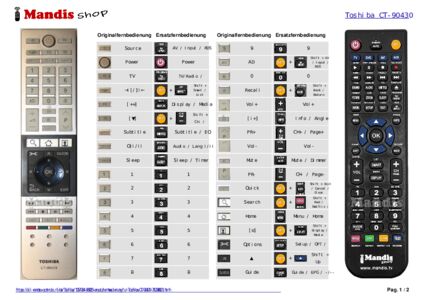 Frage an Toshiba CT-90429 (75038823) Fernbedienung