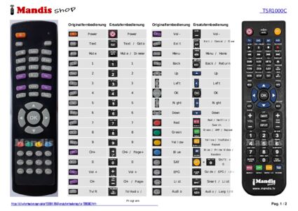 Ein Dokument ist enthalten, um die Verwendung der neuen Fernbedienung zu erleichtern, indem es die Tastenbelegung zeigt.