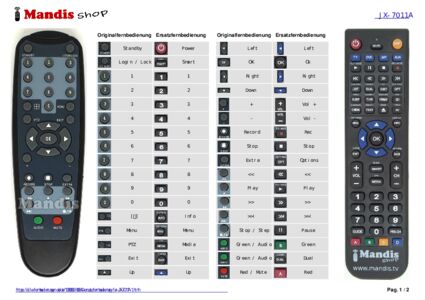Diese Fernbedienung ersetzt Ihre JX-7011A(1) in vollem Umfang und bietet alle Funktionen des Originals.