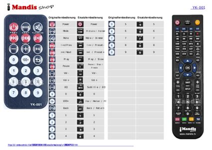 Die original Fernbedienung meines Panasonic Beamers war unreperabl defekt. Ein Ersatz war nirgends zu finden. Zum Glück entdeckte ich Mandis und bestellte die Ersatzfernbedienung nach der Originalnummer. Die nach kurzer Lieferzeit eingelangte Ersatzfernbedienung erfüllt alle, für den Betrieb wesentlichen Funktionen und es gibt dafür eine perfekte Anleitung.Das umständliche Einstellen von Schärfe, Zoom, Menue usw. direkt am Beamer geht jetzt wieder per Fernbedienung. Danke Mandis!!