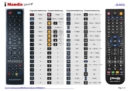 Ein Dokument ist enthalten, um die Verwendung der neuen Fernbedienung zu erleichtern, indem es die Tastenbelegung zeigt.