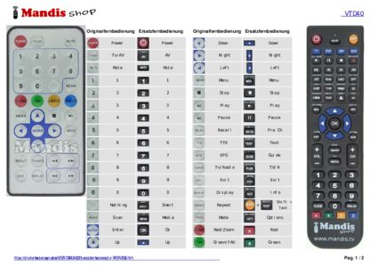 Ein Dokument ist enthalten, um die Verwendung der neuen Fernbedienung zu erleichtern, indem es die Tastenbelegung zeigt.