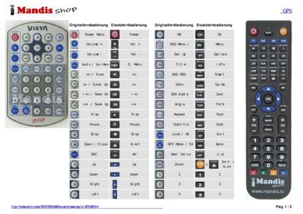 Ein Dokument ist enthalten, um die Verwendung der neuen Fernbedienung zu erleichtern, indem es die Tastenbelegung zeigt.