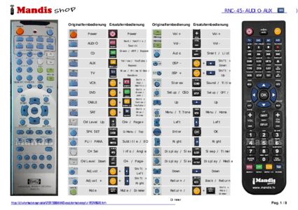Ein Dokument ist enthalten, um die Verwendung der neuen Fernbedienung zu erleichtern, indem es die Tastenbelegung zeigt.