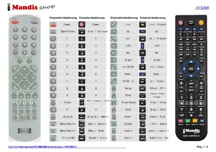 Ein Dokument ist enthalten, um die Verwendung der neuen Fernbedienung zu erleichtern, indem es die Tastenbelegung zeigt.