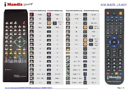 Ein Dokument ist enthalten, um die Verwendung der neuen Fernbedienung zu erleichtern, indem es die Tastenbelegung zeigt.