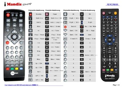 Ein Dokument ist enthalten, um die Verwendung der neuen Fernbedienung zu erleichtern, indem es die Tastenbelegung zeigt.