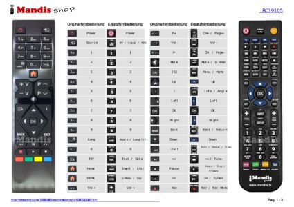 Diese Fernbedienung ersetzt Ihre RC39105 (30100821) in vollem Umfang und bietet alle Funktionen des Originals.