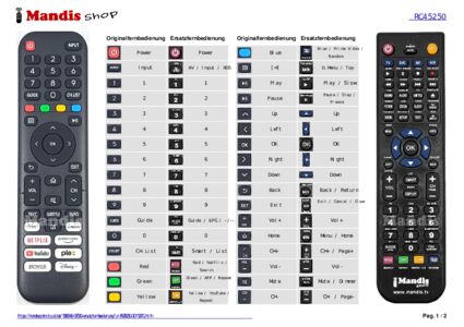 Ein Dokument ist enthalten, um die Verwendung der neuen Fernbedienung zu erleichtern, indem es die Tastenbelegung zeigt.