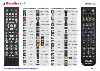 Ein Dokument ist enthalten, um die Verwendung der neuen Fernbedienung zu erleichtern, indem es die Tastenbelegung zeigt.