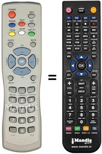 Fernbedienung, die das Original und die Gesamtheit seiner Funktionen, vollständig ersetzt. Es handelt sich jedoch nicht um eine Universalfernbedienung sondern um eine Fernbedienung die das Original ersetzt. Sie erhalten eine nach Einlegen der Batterien sofort einsatzbereite Fernbedienung. Jegliches Programmieren entfällt. Wir geben umfassende Garantie dafür, dass diese Fernbedienung alle Funktionen der Originalfernbedienung erfüllt.