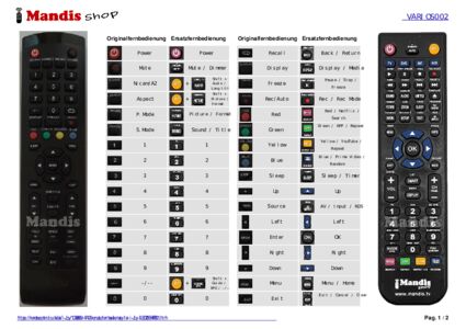 Ein Dokument ist enthalten, um die Verwendung der neuen Fernbedienung zu erleichtern, indem es die Tastenbelegung zeigt.
