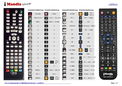 Ein Dokument ist enthalten, um die Verwendung der neuen Fernbedienung zu erleichtern, indem es die Tastenbelegung zeigt.