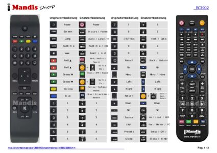 Ein Dokument ist enthalten, um die Verwendung der neuen Fernbedienung zu erleichtern, indem es die Tastenbelegung zeigt.
